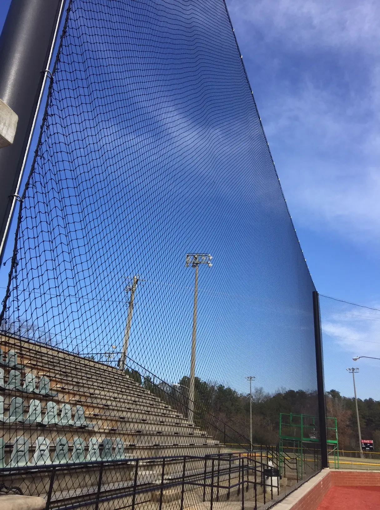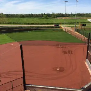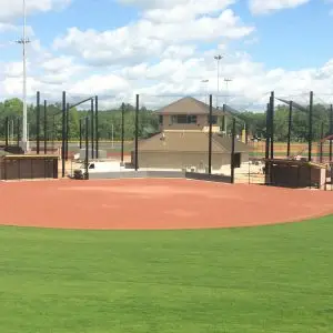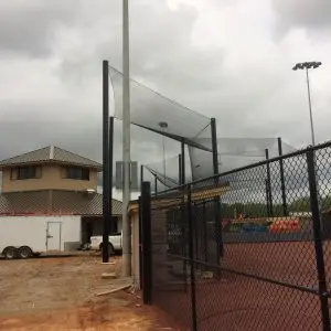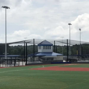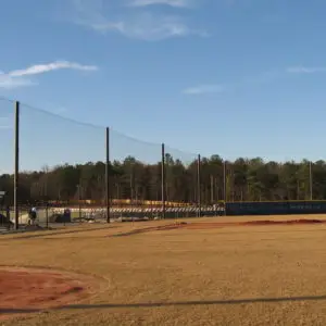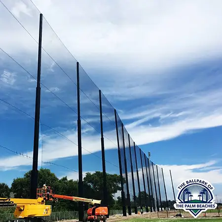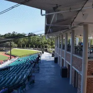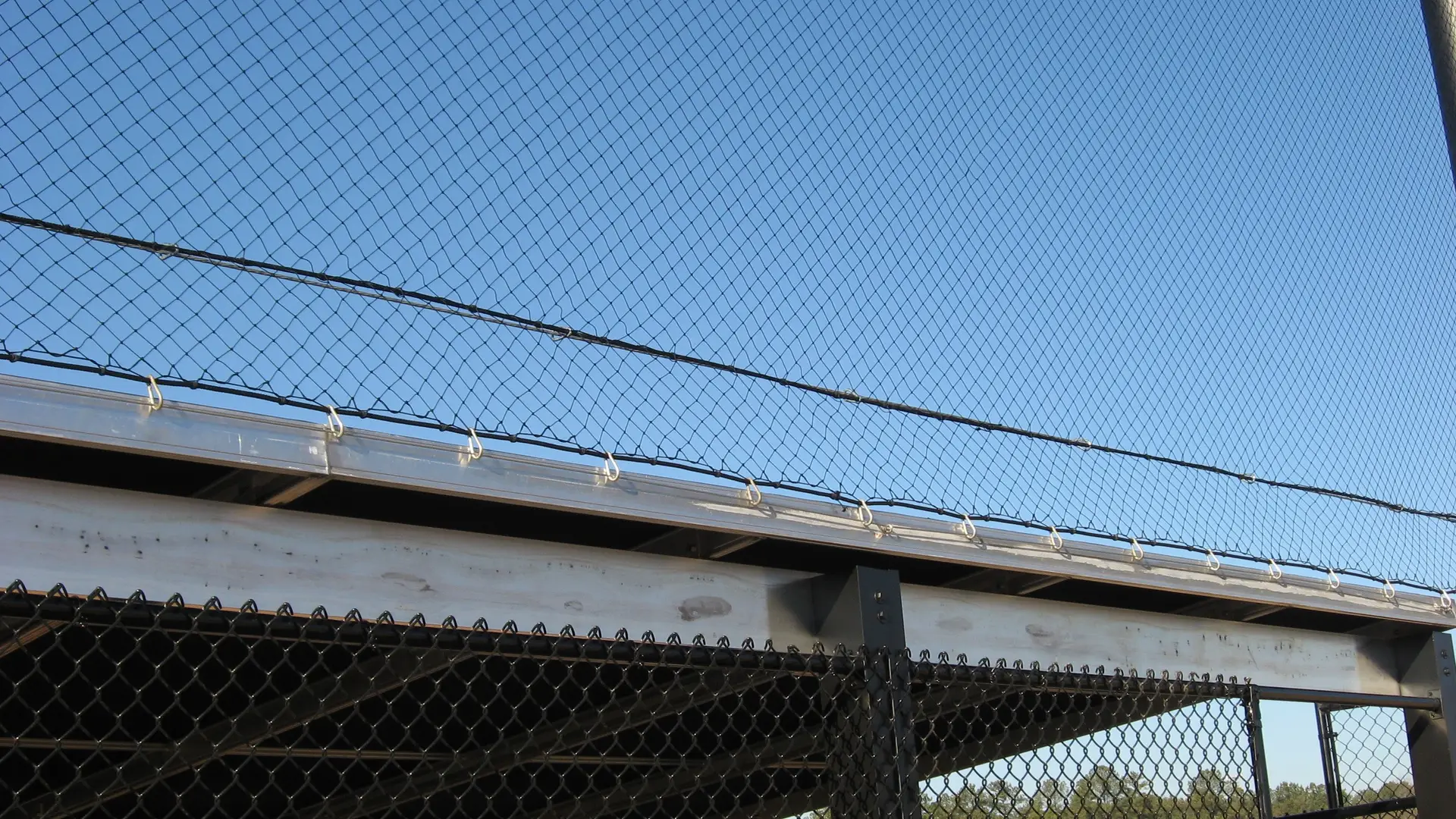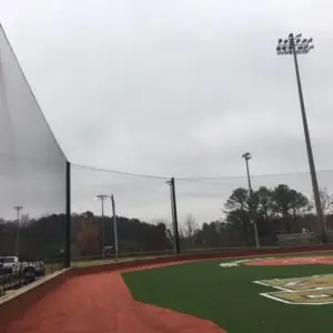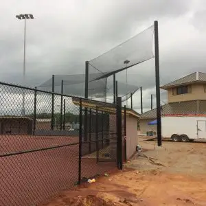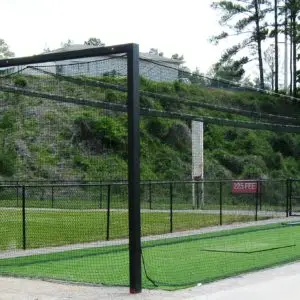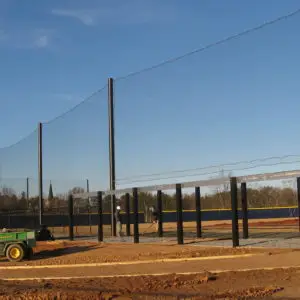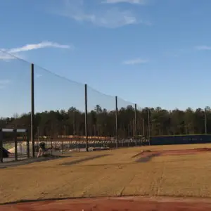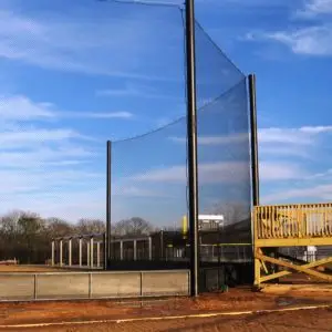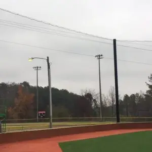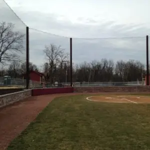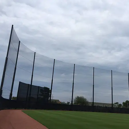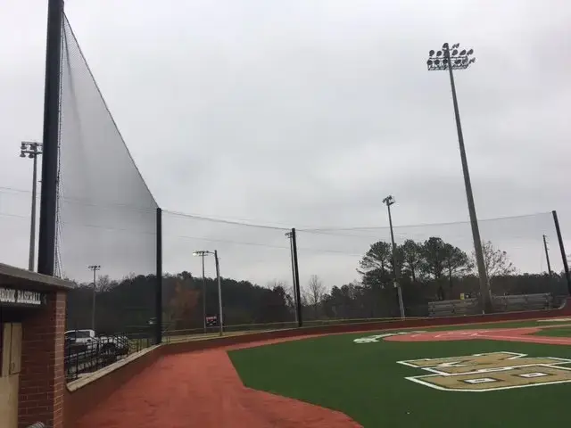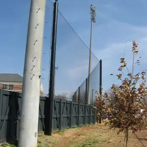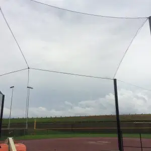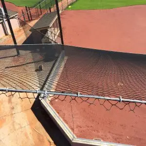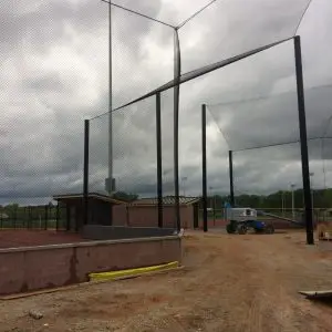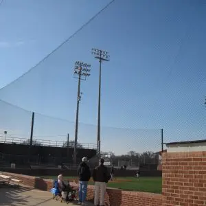 We design and install on average more than 30 baseball / softball backstop netting systems each year. These projects range from high school and park / rec. fields to universities, minor league and major league facilities. Netting systems on baseball and softball fields serves two primary functions. The first is to help prevent errant balls from leaving the field of play. The second is to provide a more fan friendly, unobstructed field of view compared to chain link. We can provide a backstop system using 4 poles, none of which are in the view of the fans. A comparable chain link backstop would require 20+ vertical poles and horizontal and is much less fan friendly. This is the primary reason so many facilities are transitioning from chain link to a properly designed and engineered netting system. Look through our project gallery for examples of several different designs and installations.