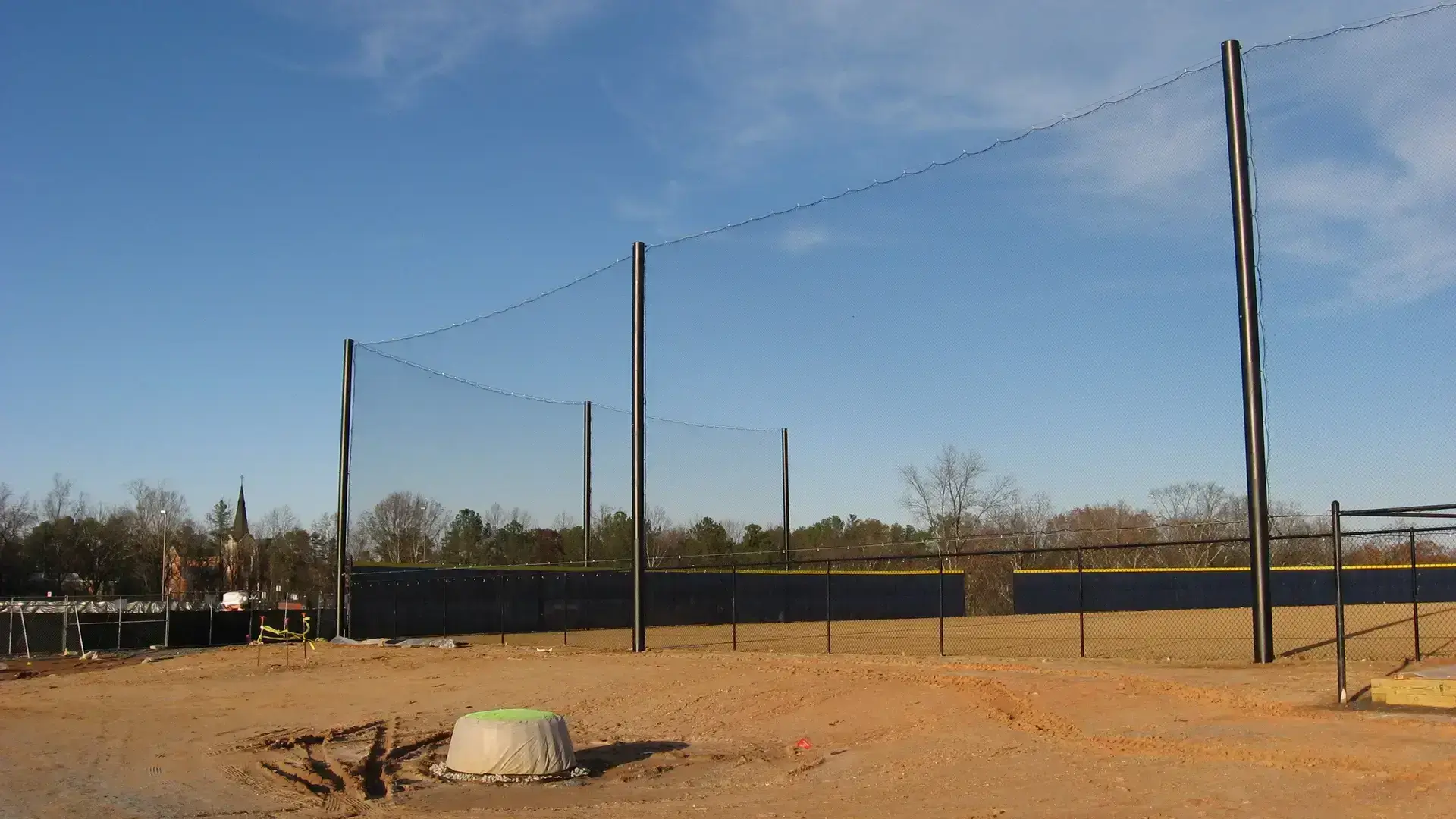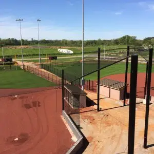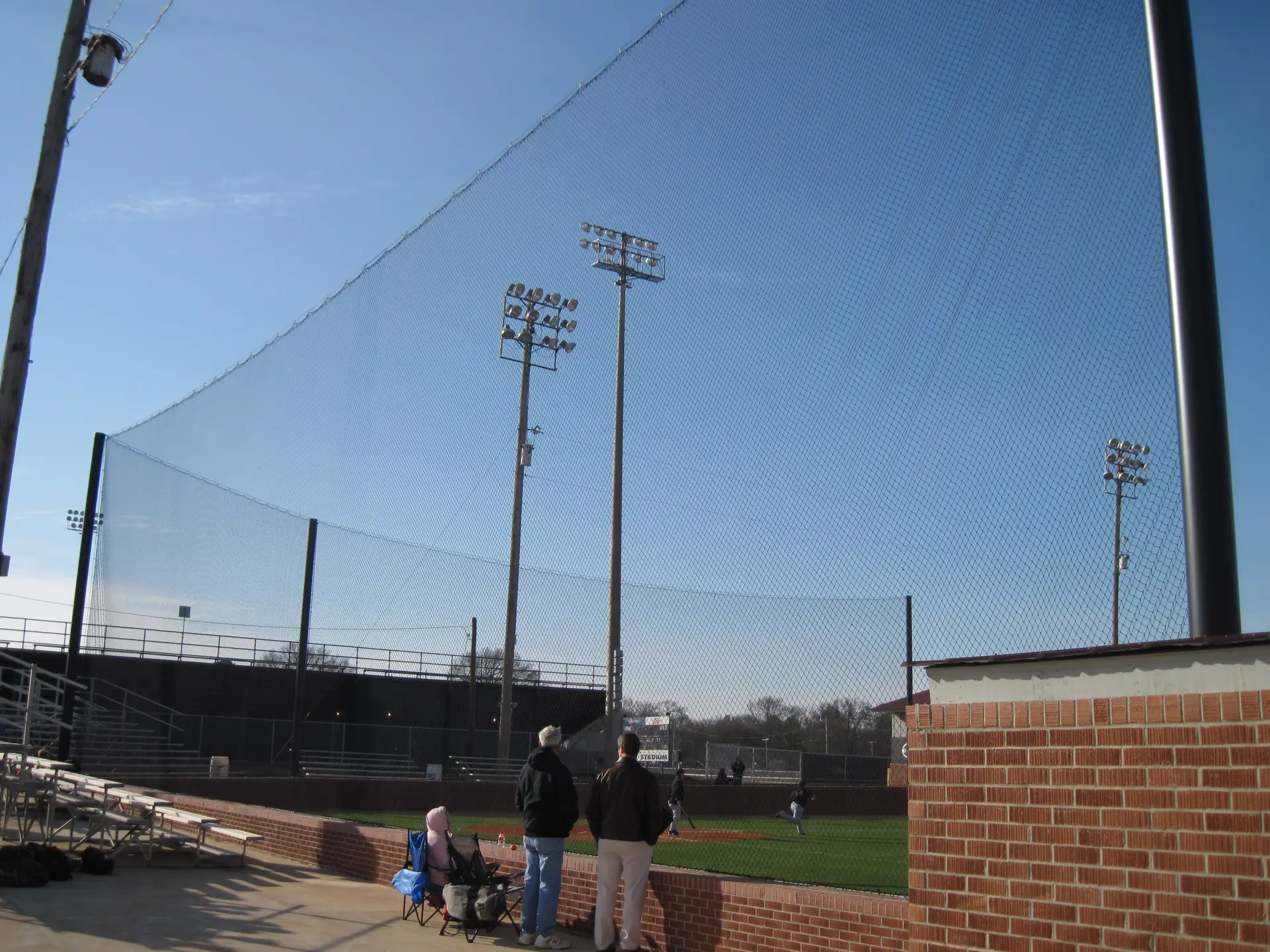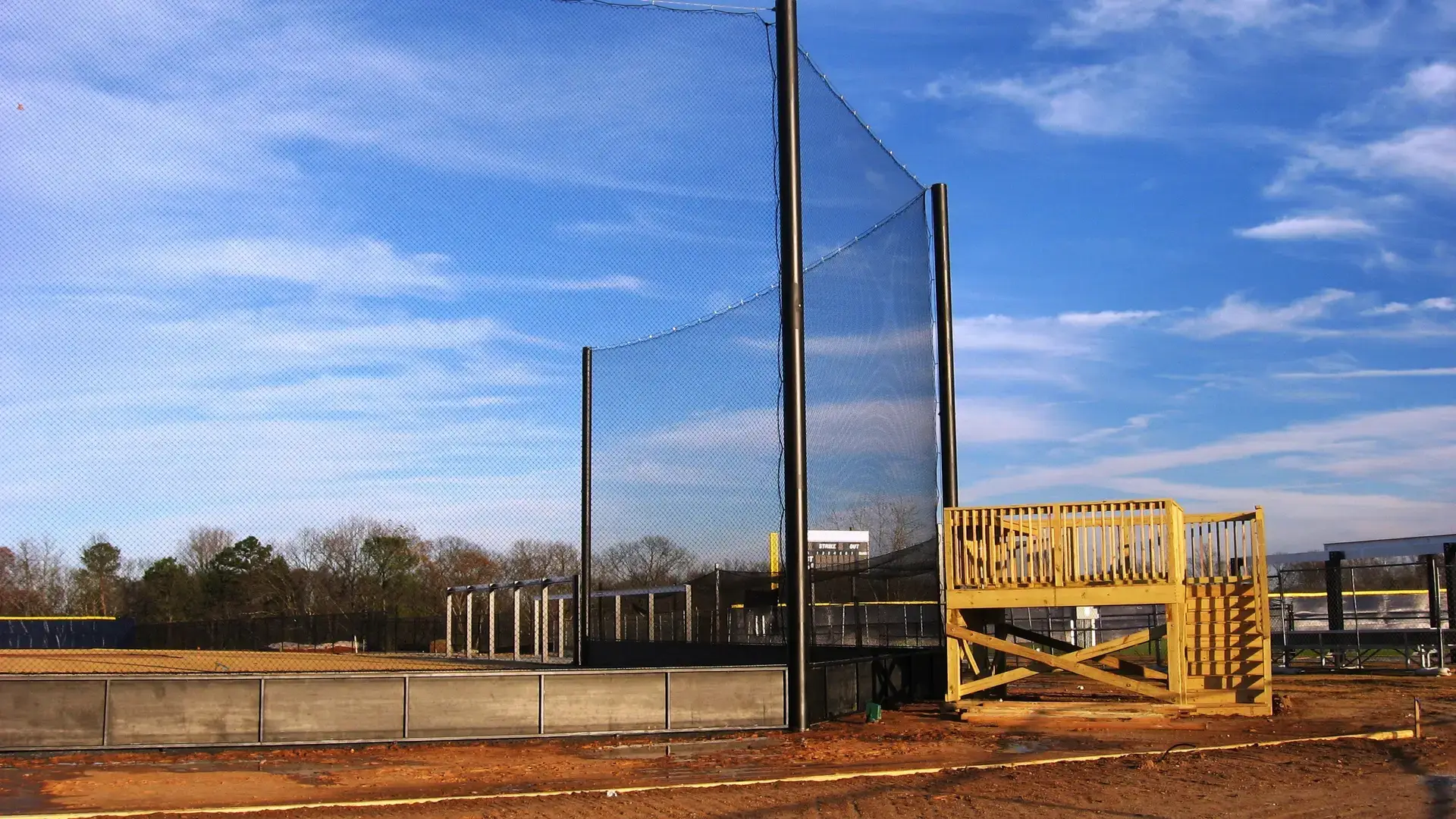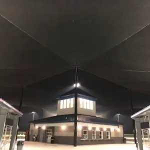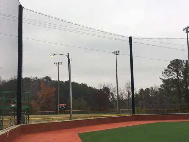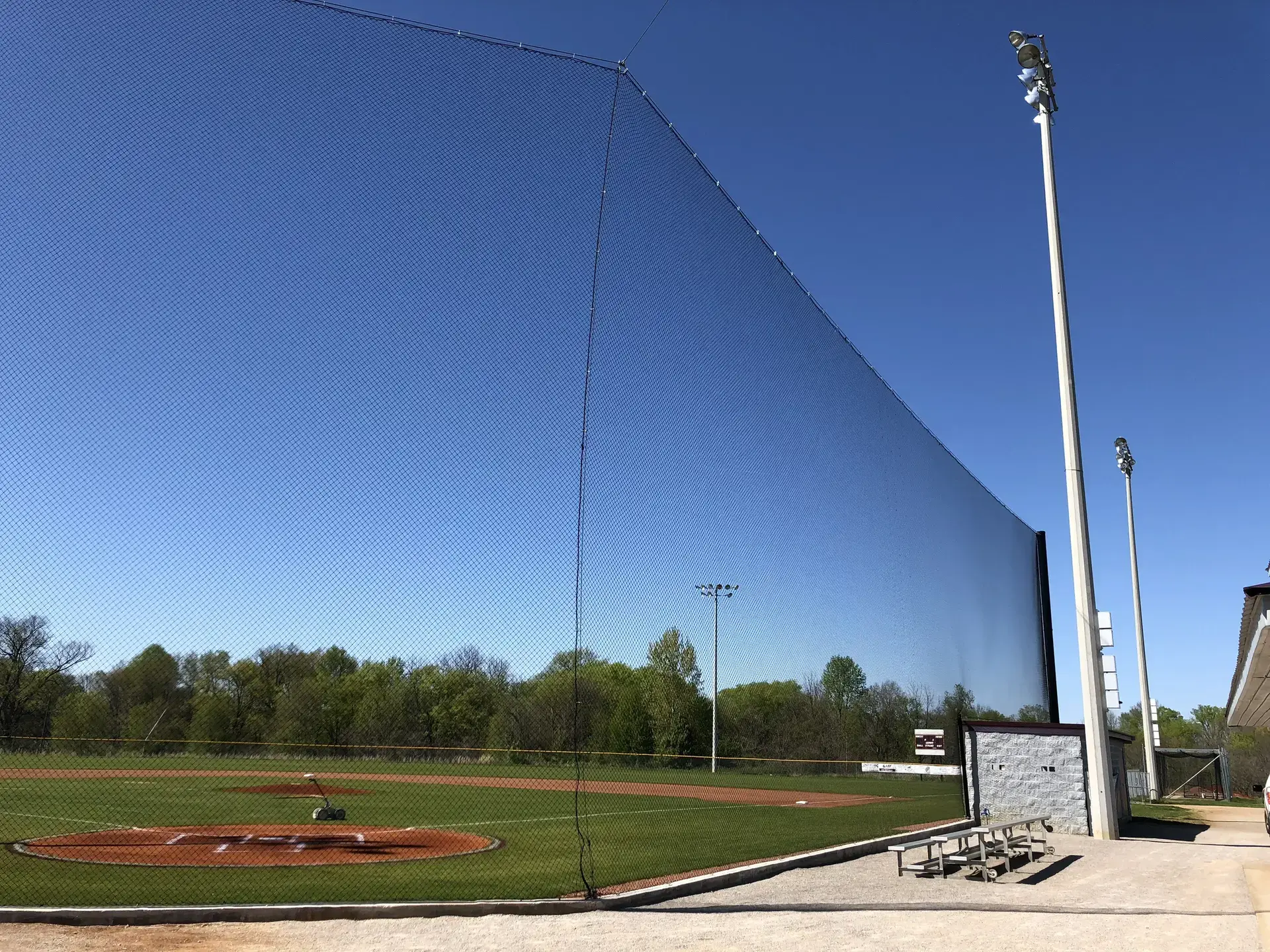 We design and install on average more than 30 baseball / softball backstop netting systems each year. These projects range from high school and park / rec. fields to universities, minor league and major league facilities. Netting systems on baseball and softball fields serves two primary functions. The first is to help prevent errant balls from leaving the field of play. The second is to provide a more fan friendly, unobstructed field of view compared to chain link. We can provide a backstop system using 4 poles, none of which are in the view of the fans. A comparable chain link backstop would require 20+ vertical poles and horizontal and is much less fan friendly. This is the primary reason so many facilities are transitioning from chain link to a properly designed and engineered netting system. Look through our project gallery for examples of several different designs and installations.