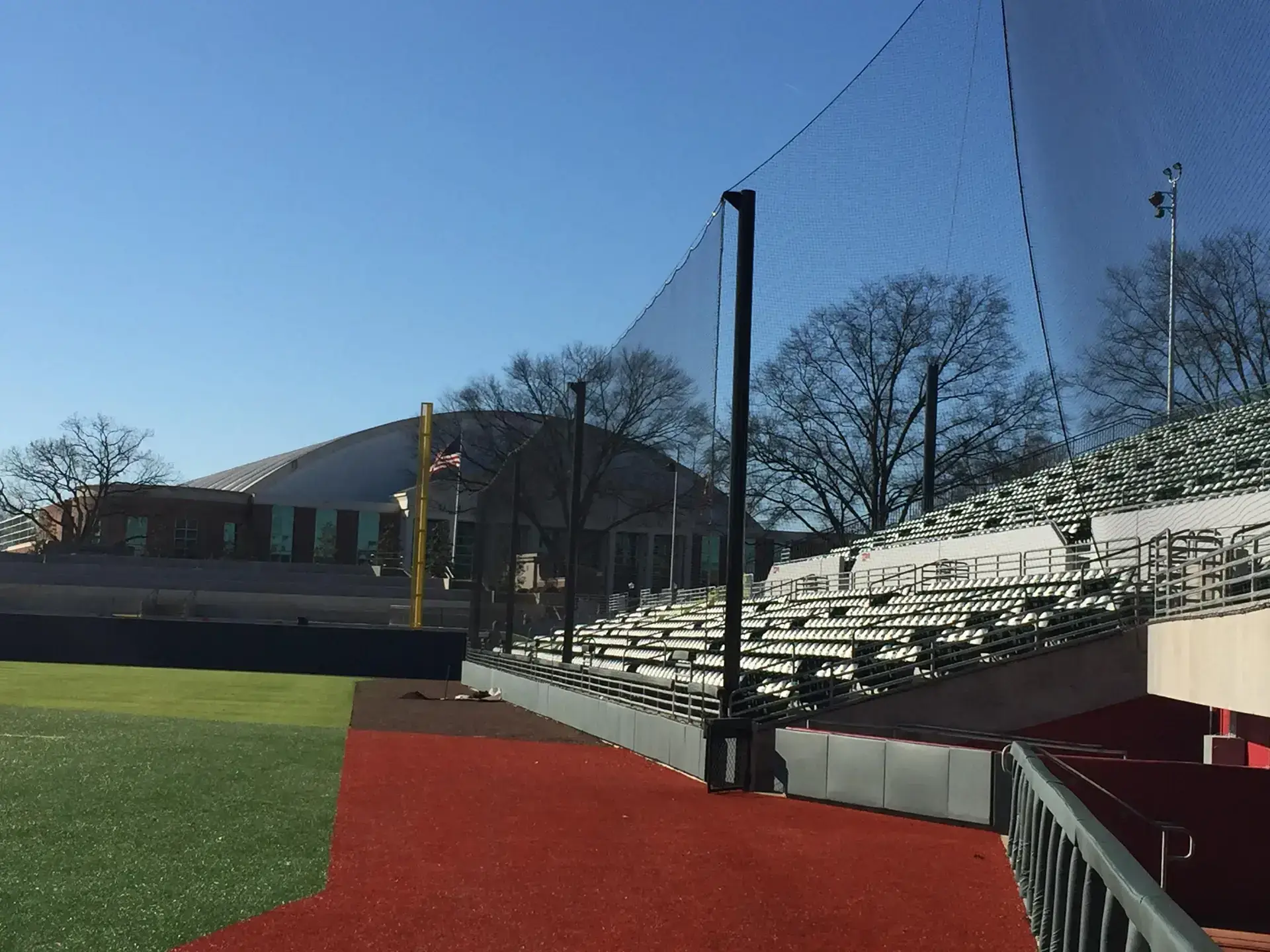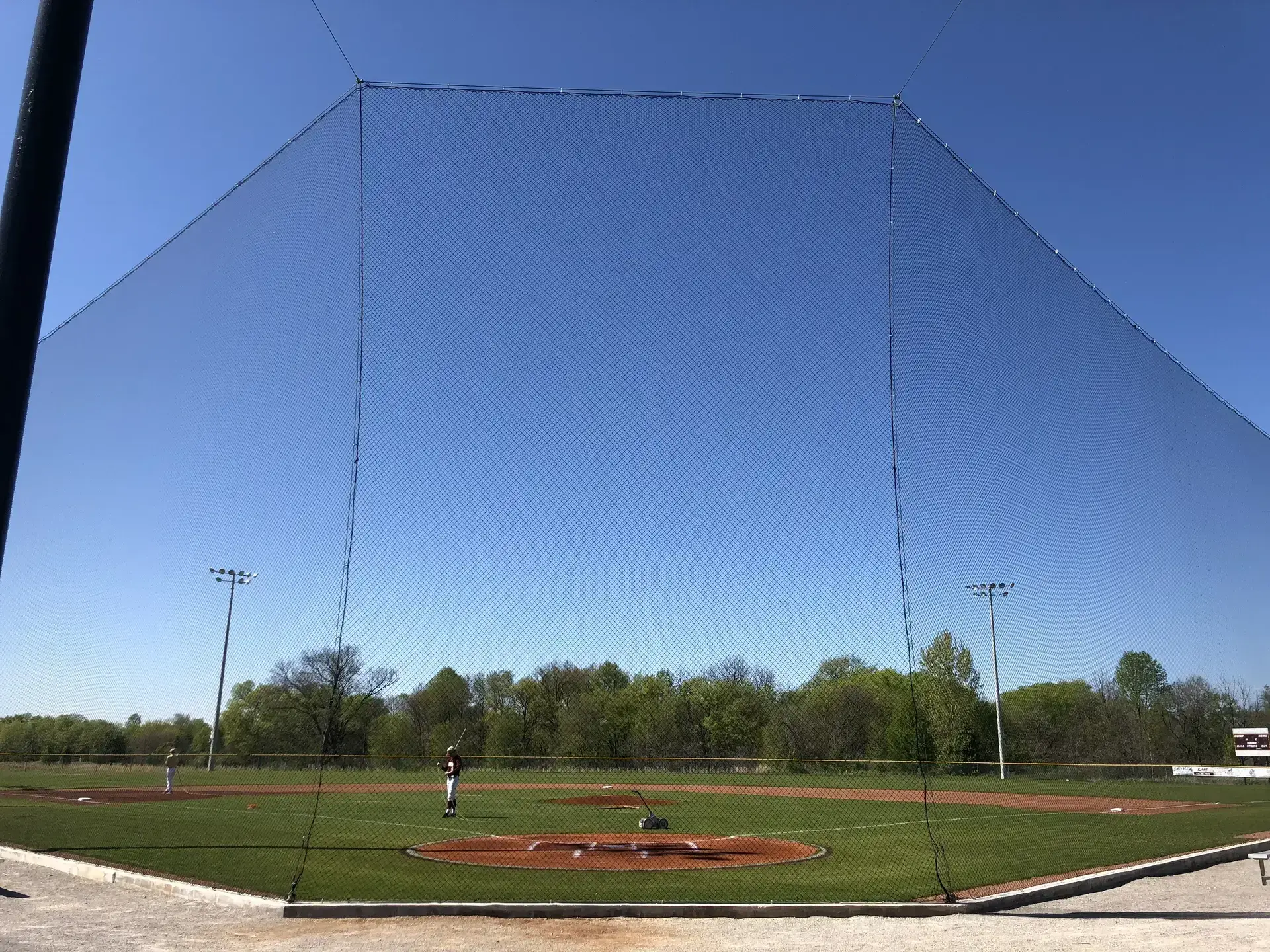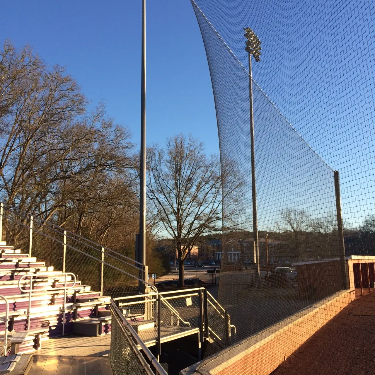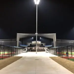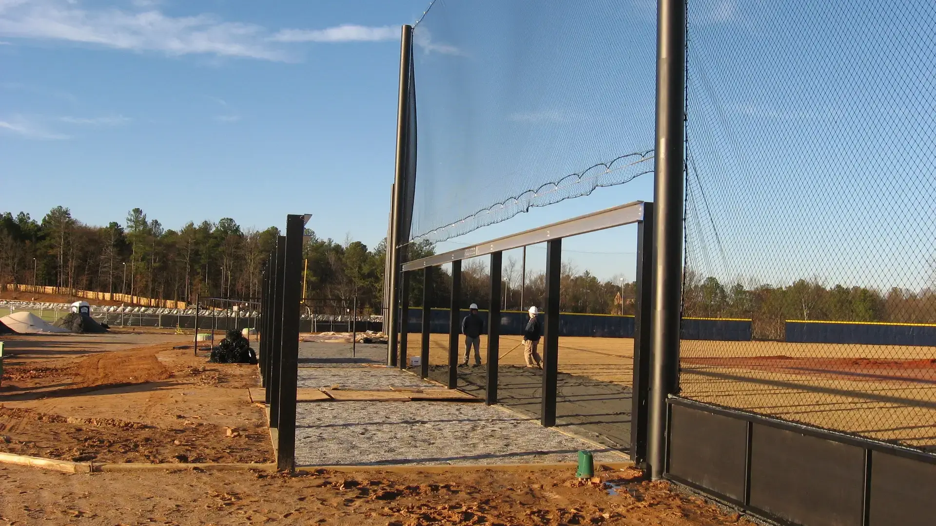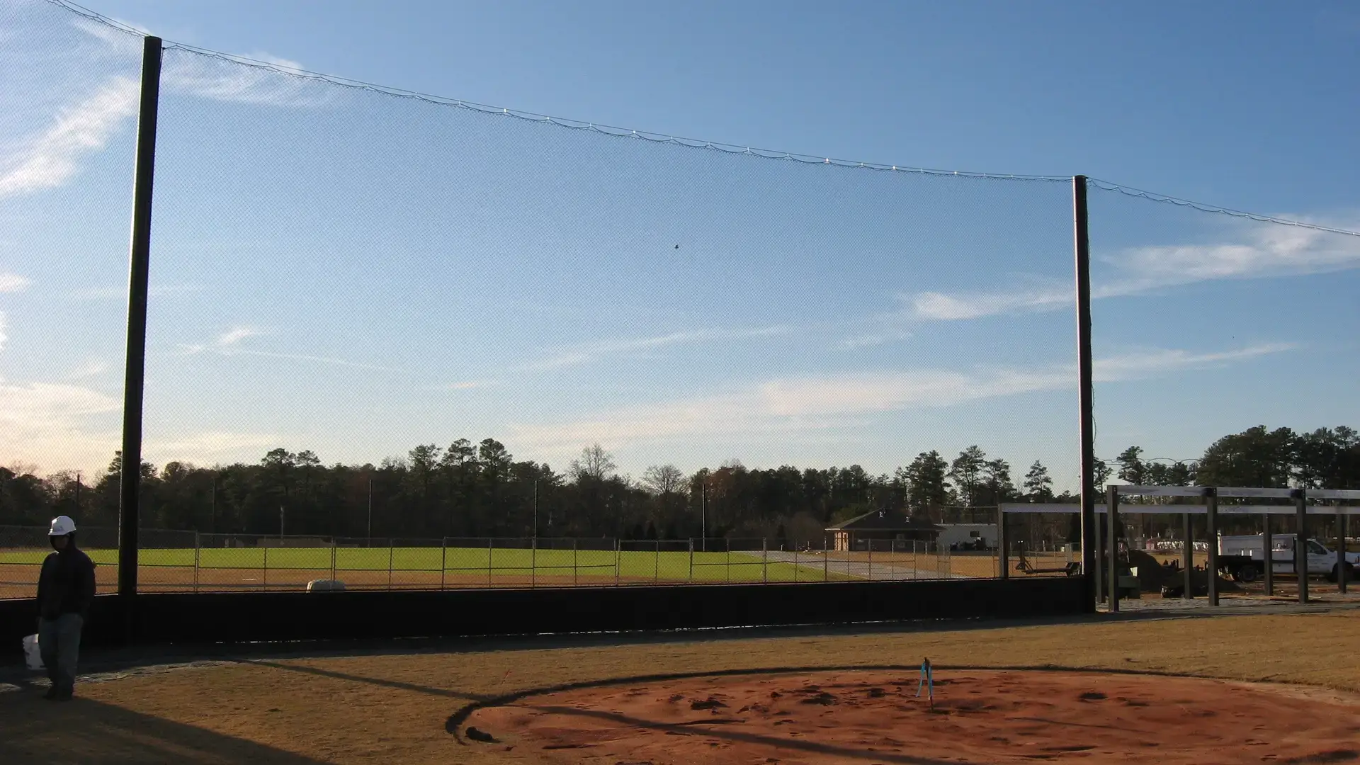 We design and install on average more than 30 baseball / softball backstop netting systems each year. These projects range from high school and park / rec. fields to universities, minor league and major league facilities. Netting systems on baseball and softball fields serves two primary functions. The first is to help prevent errant balls from leaving the field of play. The second is to provide a more fan friendly, unobstructed field of view compared to chain link. We can provide a backstop system using 4 poles, none of which are in the view of the fans. A comparable chain link backstop would require 20+ vertical poles and horizontal and is much less fan friendly. This is the primary reason so many facilities are transitioning from chain link to a properly designed and engineered netting system. Look through our project gallery for examples of several different designs and installations.