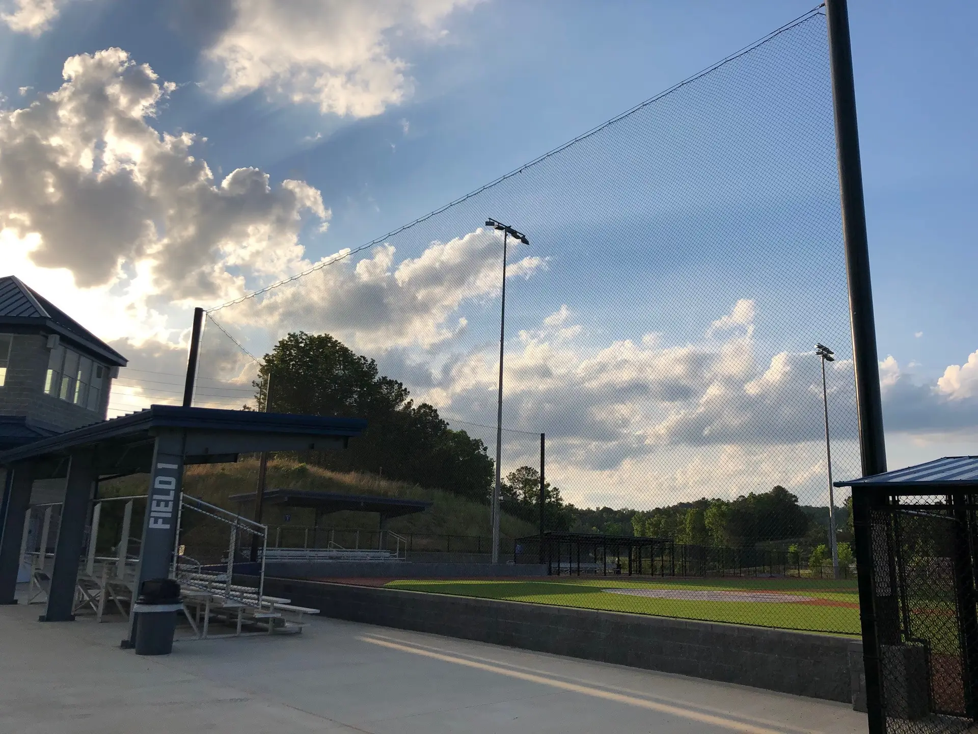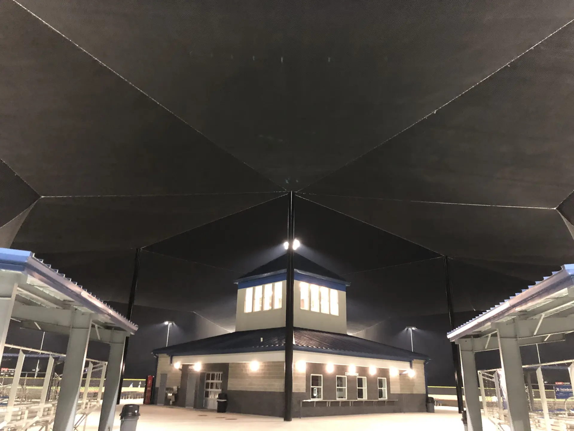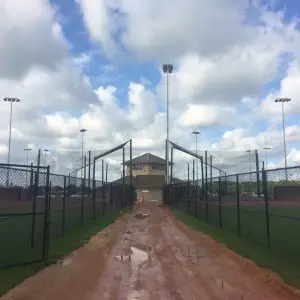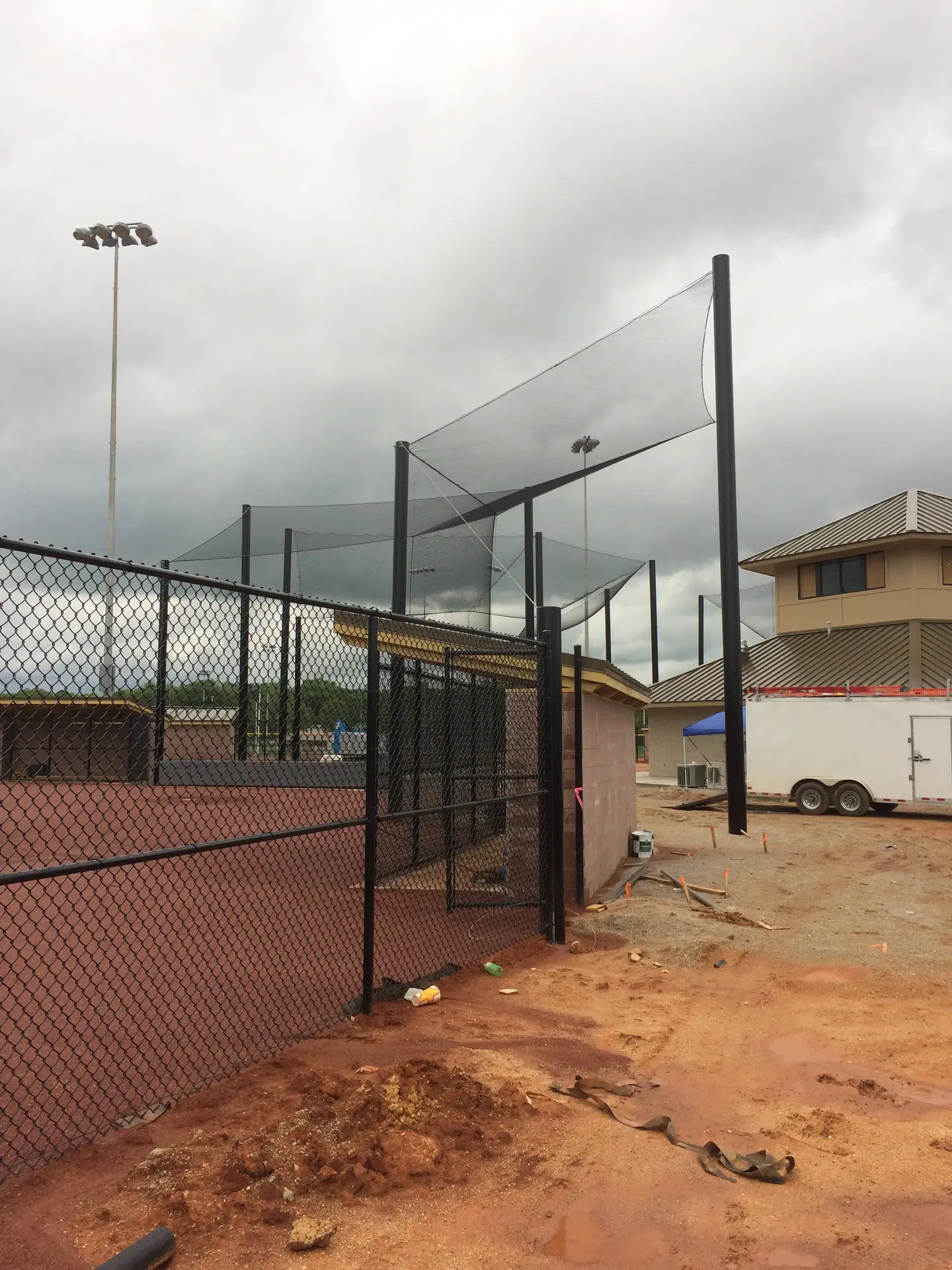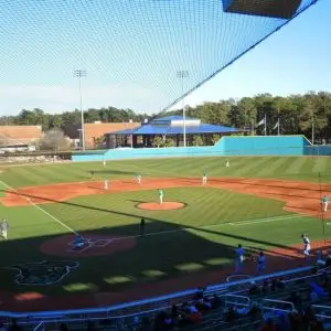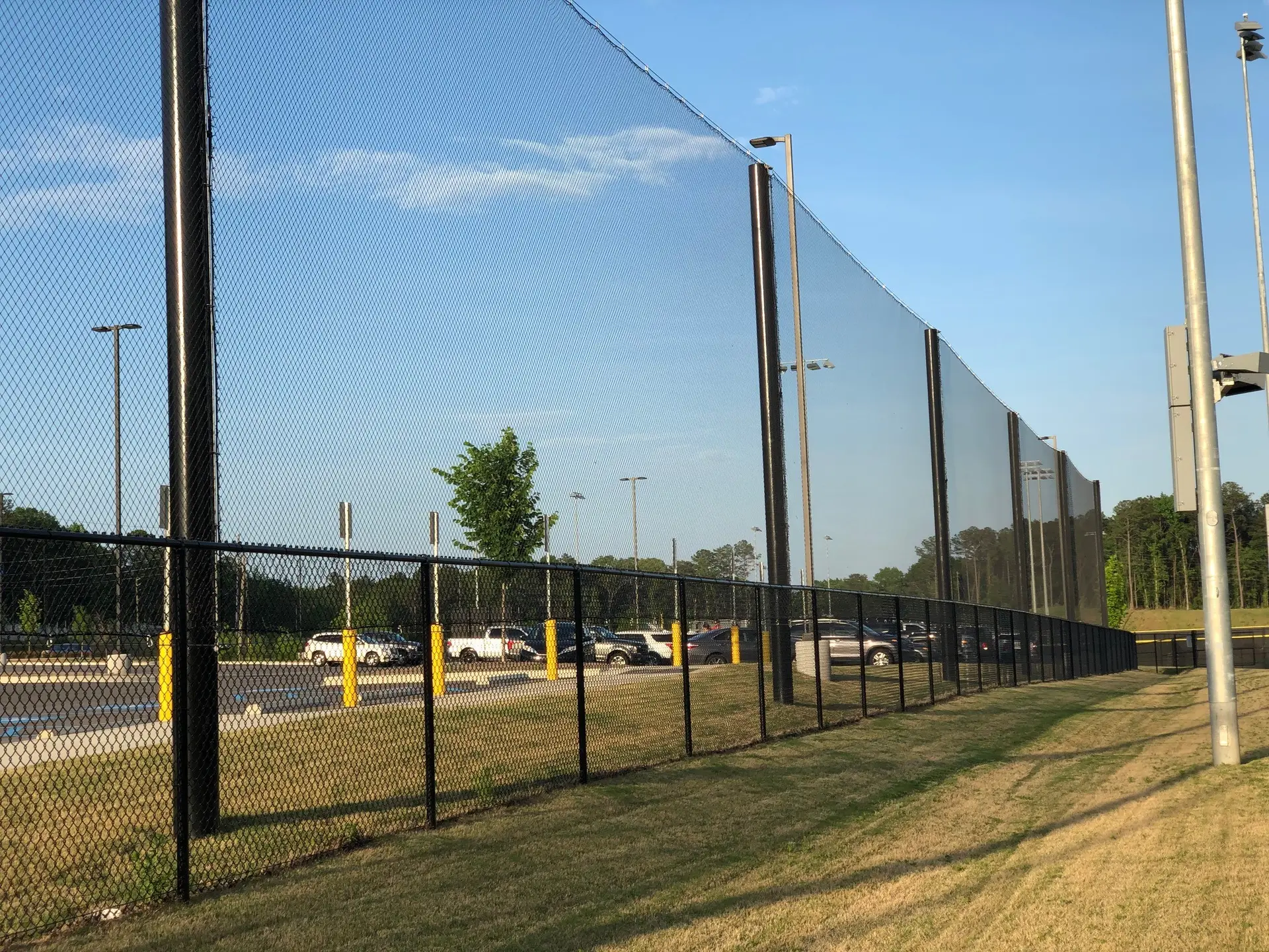We design and install on average more than 30 baseball / softball backstop netting systems each year. These projects range from high school and park / rec. fields to universities, minor league and major league facilities. Netting systems on baseball and softball fields serves two primary functions. The first is to help prevent errant balls from leaving the field of play. The second is to provide a more fan friendly, unobstructed field of view compared to chain link. We can provide a backstop system using 4 poles, none of which are in the view of the fans. A comparable chain link backstop would require 20+ vertical poles and horizontal and is much less fan friendly. This is the primary reason so many facilities are transitioning from chain link to a properly designed and engineered netting system. Look through our project gallery for examples of several different designs and installations.