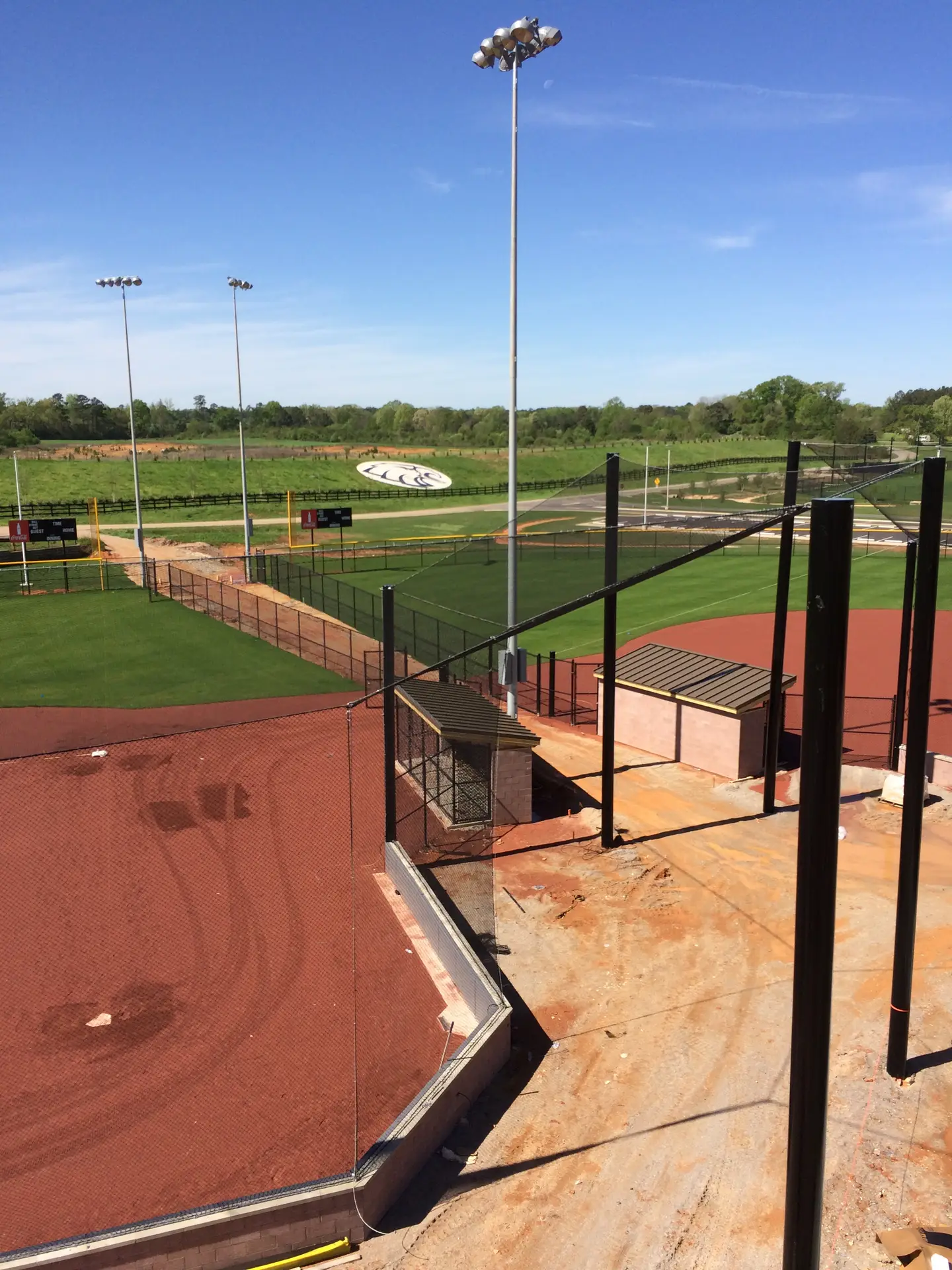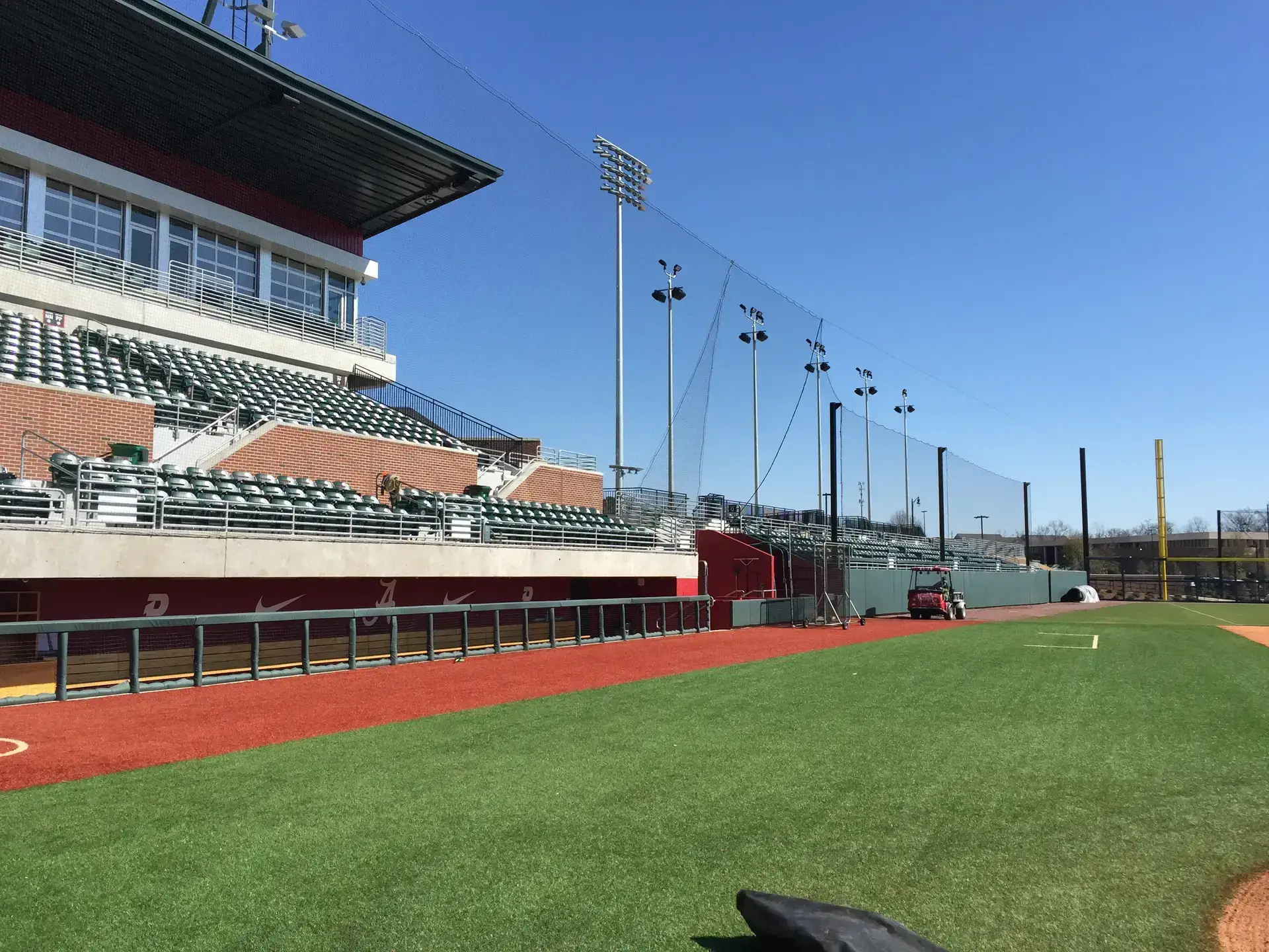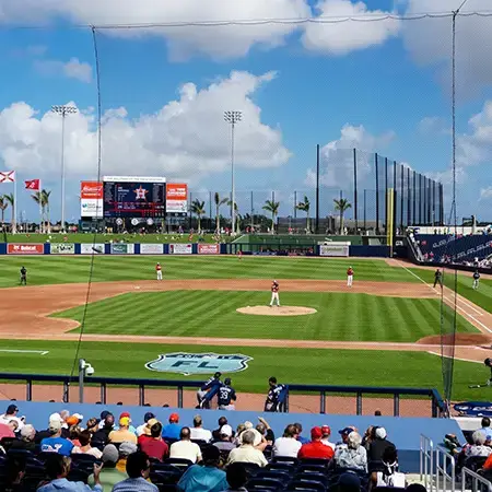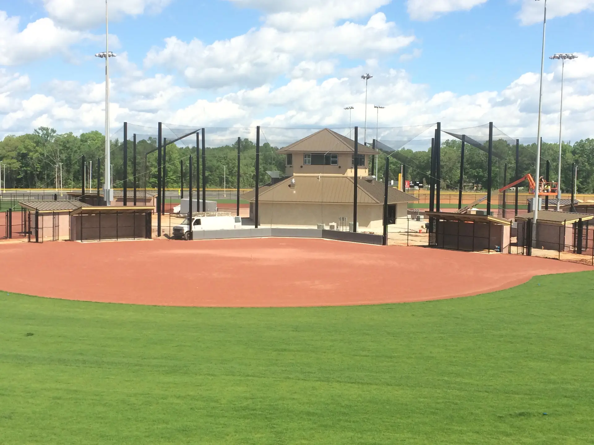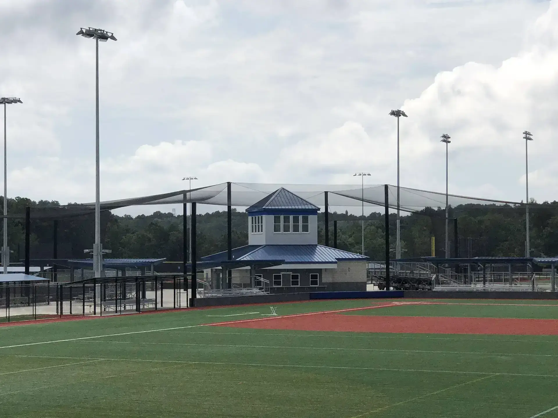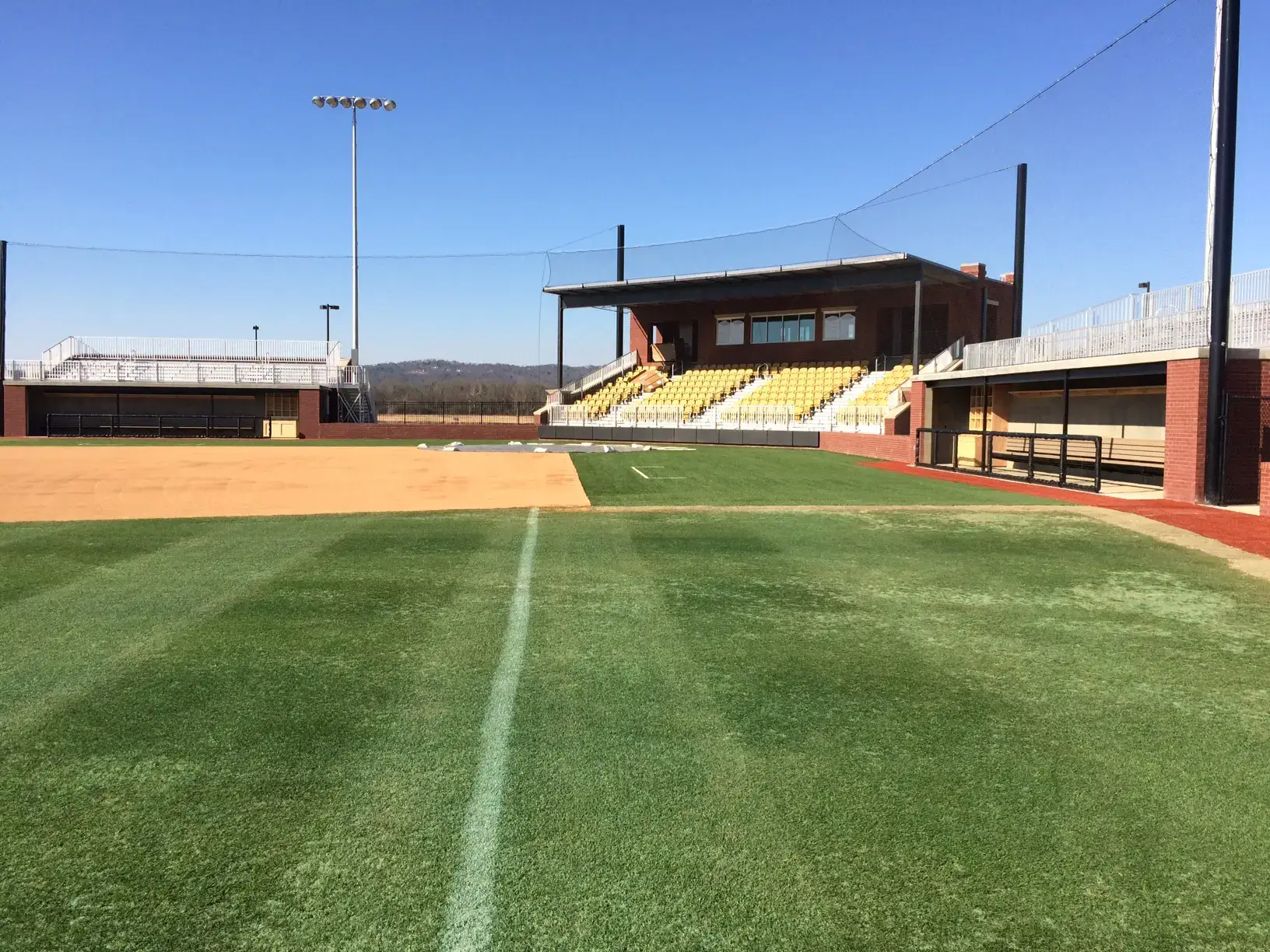 We design and install on average more than 30 baseball / softball backstop netting systems each year. These projects range from high school and park / rec. fields to universities, minor league and major league facilities. Netting systems on baseball and softball fields serves two primary functions. The first is to help prevent errant balls from leaving the field of play. The second is to provide a more fan friendly, unobstructed field of view compared to chain link. We can provide a backstop system using 4 poles, none of which are in the view of the fans. A comparable chain link backstop would require 20+ vertical poles and horizontal and is much less fan friendly. This is the primary reason so many facilities are transitioning from chain link to a properly designed and engineered netting system. Look through our project gallery for examples of several different designs and installations.