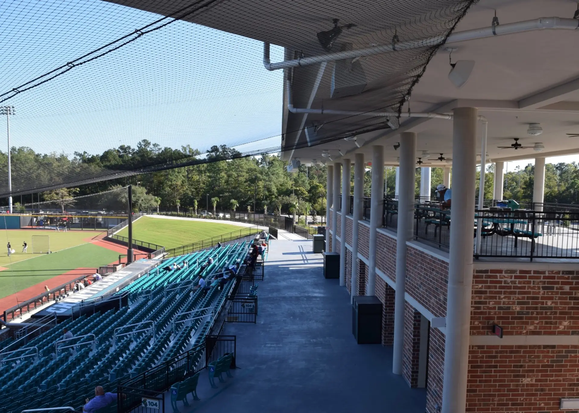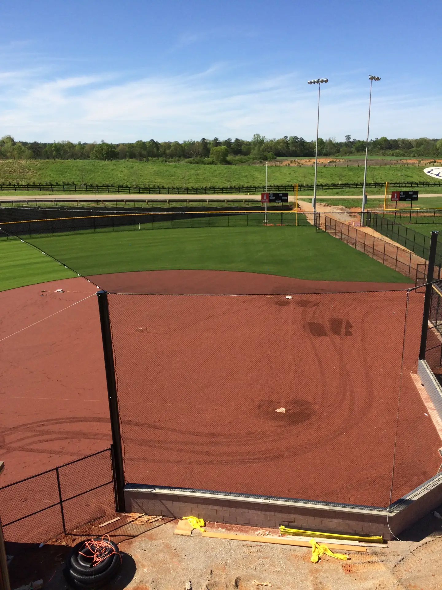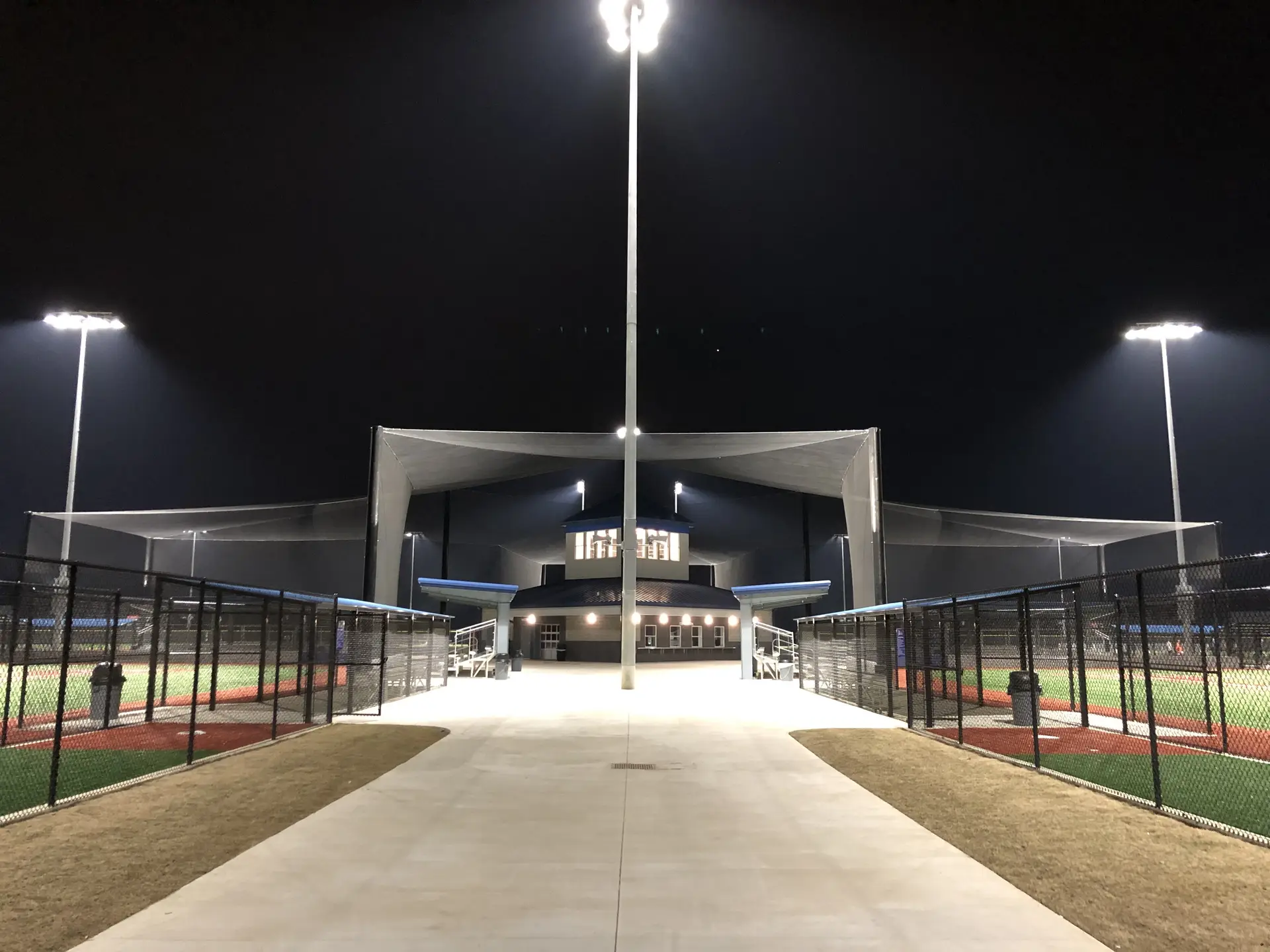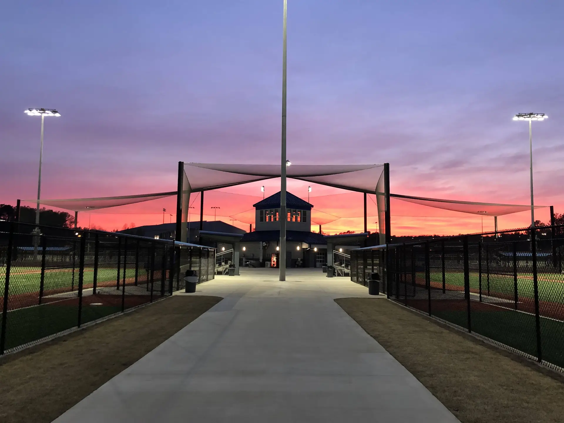 We design and install on average more than 30 baseball / softball backstop netting systems each year. These projects range from high school and park / rec. fields to universities, minor league and major league facilities. Netting systems on baseball and softball fields serves two primary functions. The first is to help prevent errant balls from leaving the field of play. The second is to provide a more fan friendly, unobstructed field of view compared to chain link. We can provide a backstop system using 4 poles, none of which are in the view of the fans. A comparable chain link backstop would require 20+ vertical poles and horizontal and is much less fan friendly. This is the primary reason so many facilities are transitioning from chain link to a properly designed and engineered netting system. Look through our project gallery for examples of several different designs and installations.